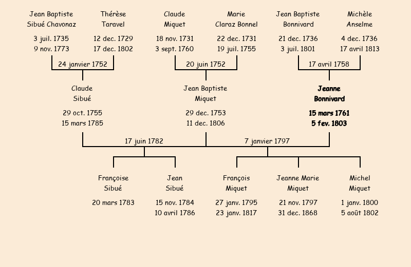 Epouse : Jeanne Bonnivard, fille de Jean Baptiste et de Michelette Anselme |