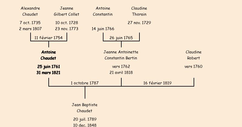 Père : Alexandre Chaudet | Parrain : Antoine Gilbert Collet (fils de Michel) |