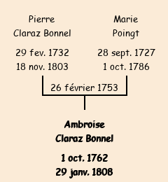 Père : Pierre Claraz Bonnel | Parrain : Ambroise Poingt (fils de Nicolas) |