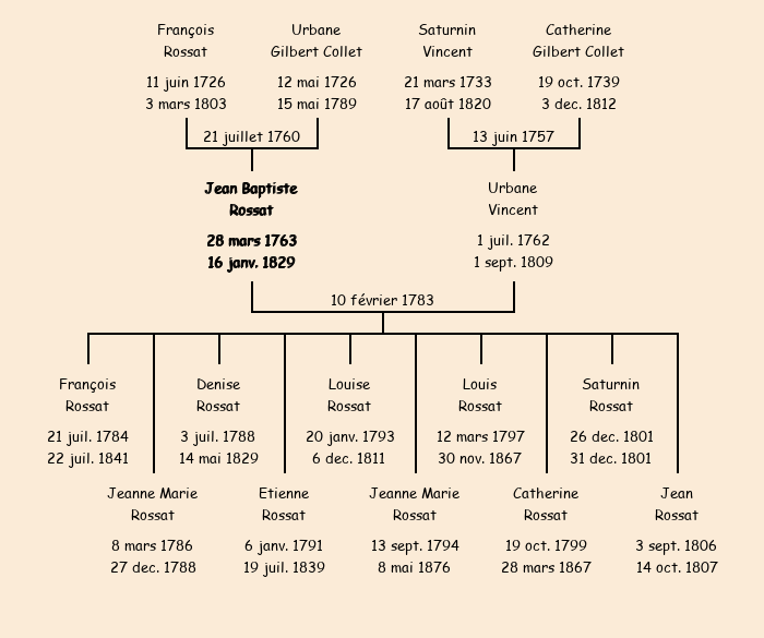 Epoux : Jean Baptiste Rossat, fils de François et de Albane Gilbert Collet |