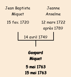 | Père : Jean Baptiste Miquet | Parrain : Gaspard Vincent Adreyt |