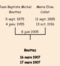 Père : Jean Baptiste Michel Bouttaz (31 ans) |
