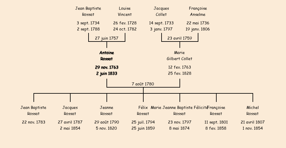 Epoux : Antoine Rossat, fils de Jean Baptiste et de Louise Vincent |