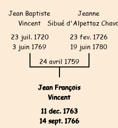 Père : Jean Baptiste Vincent | Parrain : Jean François Sibué (fils de Joseph) |