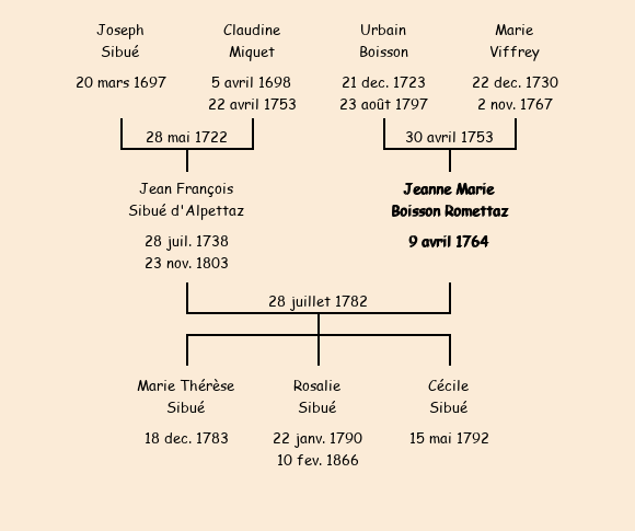 Mariée (18 ans) avec Jean François Sibué d'Alpettaz (44 ans) le 28 juillet 1782 à Fontcouverte ![]() |