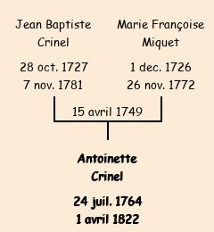 Mère : Marie Miquet | Marraine : Antoinette Domenjon (fille de Jean Baptiste) |