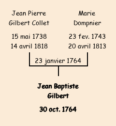 | Père : Jean Pierre Gilbert | Parrain : Jean Baptiste Gilbert |