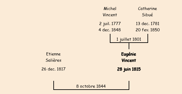 Mariée (29 ans) avec Etienne Salières (26 ans) le 8 octobre 1844 à Fontcouverte ![]() |