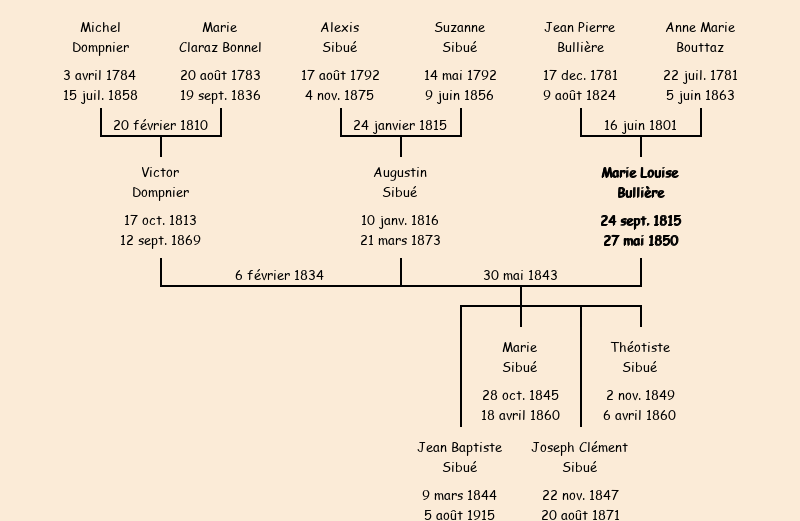 Epouse : Marie Louise Bullière, fille de feu Jean Pierre et de Marie Anne Bouttaz |
