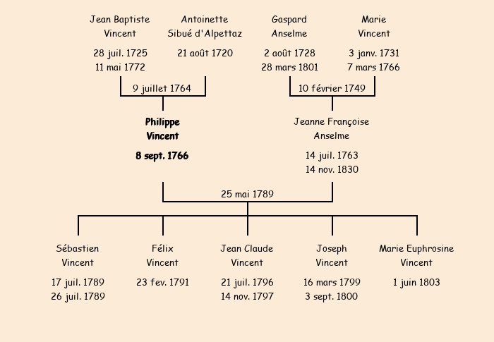 Epouse : Jeanne Françoise Anselme, fille de Gaspard et de feue Marie Vincent |