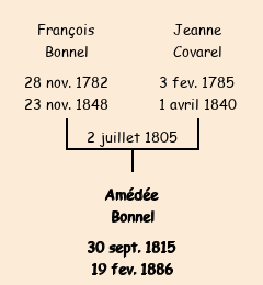 Mère : Jeanne Françoise Covarel | Marraine : Georgia Dominjon (épouse d'Alexandre Bonnel) |