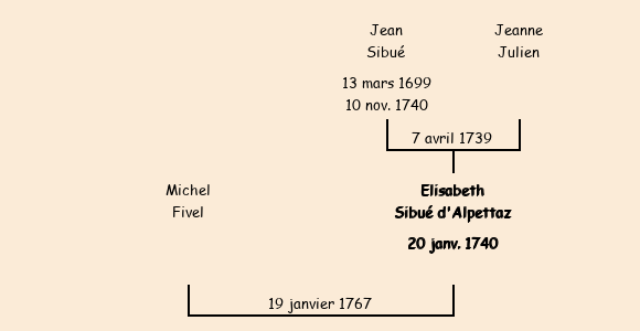 | Père : Jean Sibué d'Alpettaz | Parrain : Jean Baptiste Julien (d'Albiez le Vieux) |