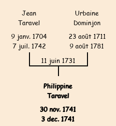 | Mère : Urbaine Domenjon | Marraine : Philippine Taravel (fille de Claude) |