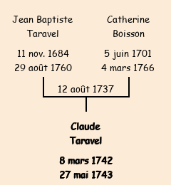 Père : Jean Baptiste Taravel | Parrain : Claude Poingt (fils d'Antoine) |
