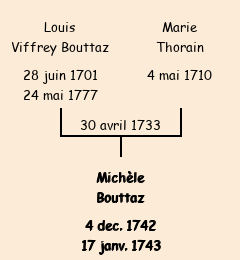 | Père : Louis Bouttaz | Parrain : Claude Thorain (fils de Claude décédé, frère de la marraine) |