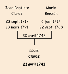 | Père : Jean Baptiste Claraz | Parrain : Louis Claraz (fils de Michel décédé, frère de la marraine) |