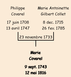 Mère : Marie Antoinette Collet | Marraine : Marie Covarel (fille de Jean Baptiste, soeur du parrain) |