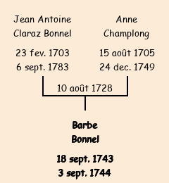 | Mère : Anne Champlong | Marraine : Barbe Vincent Adreyt (fille d'Antoine) |