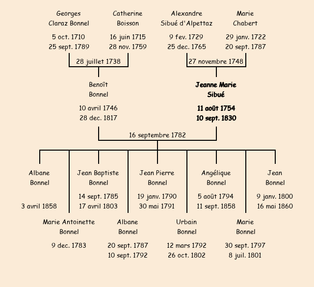 Mariée (28 ans) avec Benoît Bonnel (36 ans) le 16 septembre 1782 à Fontcouverte ![]() |