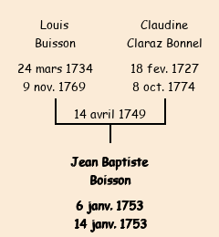 | Mère : Claudine Claraz Bonnel | Marraine : Françoise Bullière (veuve de Jacques Boisson) |