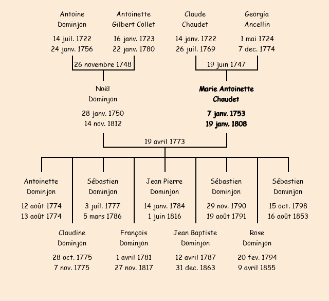 | Epouse : Marie Antoinette Chaudet, fille de feu Claude et de Georgia Ancellin |