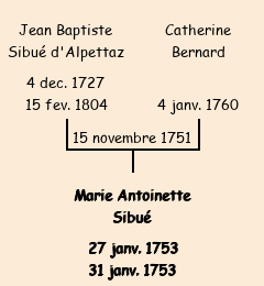 | Père : Jean Baptiste Sibué | Parrain : Jean Bernard (fils de Barthélémy, de Saint Sorlin d'Arves) |