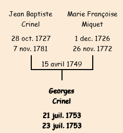 | Père : Jean Baptiste Crinel | Parrain : Georges Crinel (fils de Georges) |