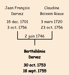Mère : Claudine Boisson Rieux | Marraine : Barthélémie Claraz (fille de Jean Baptiste) |