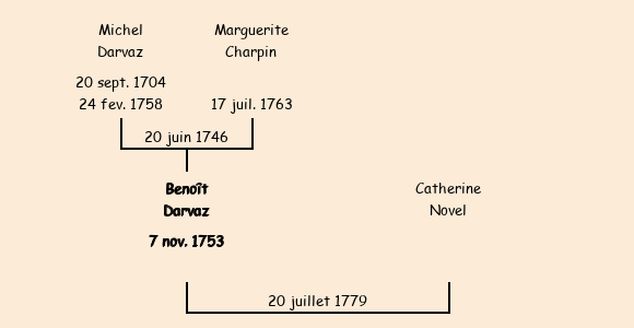 | Marié (25 ans) avec Catherine Novel le 20 juillet 1779 à Saint-Jean-de-Maurienne |