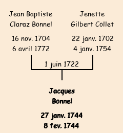 | Père : Jean Baptiste Bonnel | Parrain : Jacques Boisson (fils de Louis décédé) |