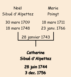 | Père : Noël Sibué d'Alpettaz, fils de Georges | Parrain : Jean Poingt (fils d'Antoine décédé) |