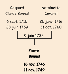 | Père : Gaspard Bonnel | Parrain : Pierre Covarel (fils de Jean Baptiste) |