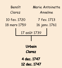| Père : Benoît Claraz | Parrain : Urbain Boisson (fils de Jean Baptiste décédé) |