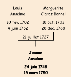 | Marguerite Claraz Bonnel (°1703 +1768) - 44 ans |