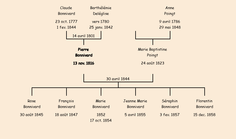 Epoux : Pierre Bonnivard (27 ans, a signé), fils de feu Claude et de feue Barthélémie Deléglise |