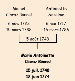 | Marie Antoinette Claraz Bonnel apparait dans la consigne du sel pour l'année 1759. |