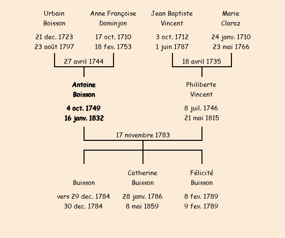| Epoux : Antoine Buisson, fils de Urbain et de feue Anne Dominjon |