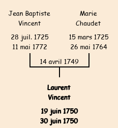 | Père : Jean Baptiste Vincent | Parrain : Laurent Vincent (fils de Michel décédé) |