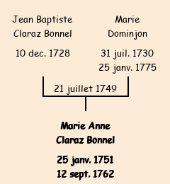 | Mère : Marie Domenjon | Marraine : Anne Claraz Bonnel (fille de Dominique) |