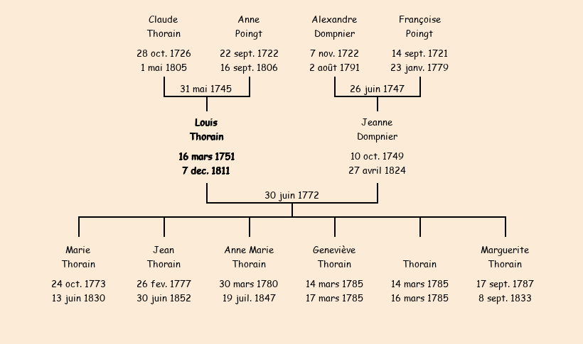 Père : Claude Thorain | Parrain : Louis Taravel (fils de Claude, décédé) |