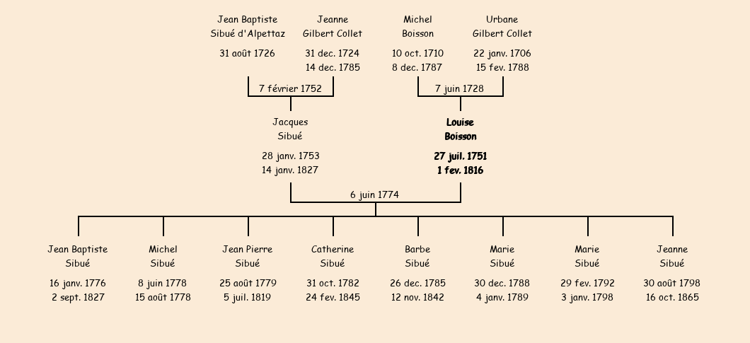 Epoux : Jacques Sibué, fils de Jean Baptiste |