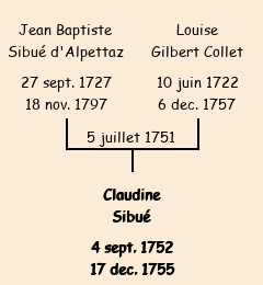 | Père : Jean Baptiste Sibué | Parrain : Jacques Gilbert Collet (fils de Claude, décédé) |