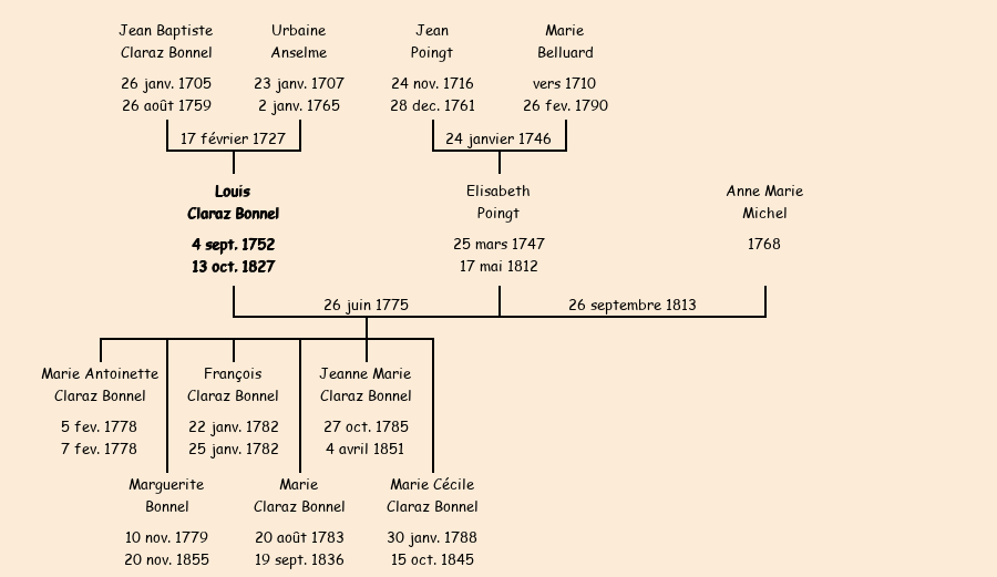 Epoux : Louis Claraz Bonnel (veuf d'Elisabeth Poingt), fils de feu Jean Baptiste |
