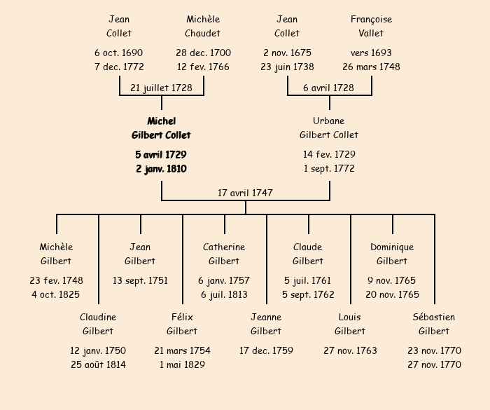 | Mère : Michèle Chaudet | Marraine : Antoinette Gilbert Collet (fille d'honorable Sébastien, soeur du parrain) |