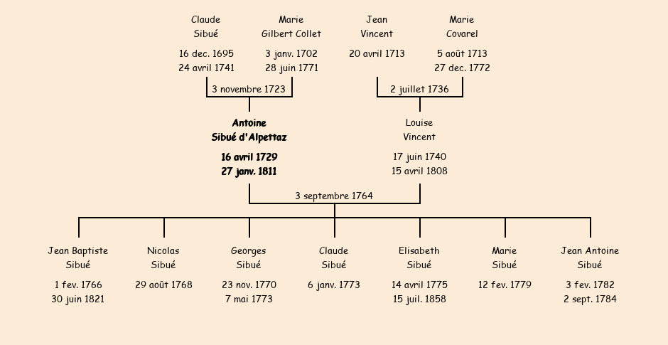 Antoine Sibué d'Alpettaz apparait dans la consigne du sel pour l'année 1790. |