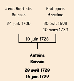 | Mère : Philippine Anselme | Marraine : Françoise Boisson (fille du parrain) |