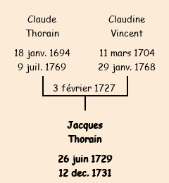 Père : Claude Thorain | Parrain : Jacques Thorain (fils de Pierre décédé, a signé) |