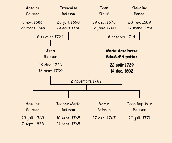 Marie Antoinette Sibué d'Alpettaz apparait dans la consigne du sel pour l'année 1790. |
