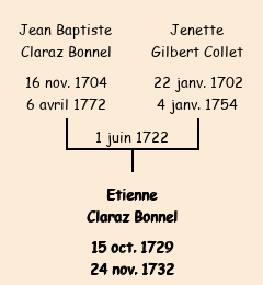 | Père : Jean Baptiste Claraz Bonnel | Parrain : Etienne Claraz Bonnel (fils de Michel décédé) |