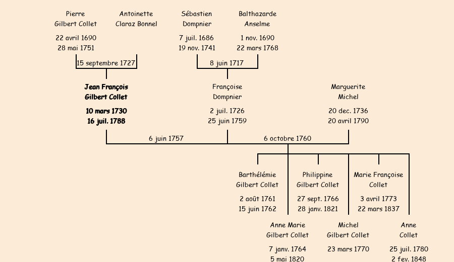 Epoux : Jean François Gilbert Collet (veuf de Jeanne Dompnier) |